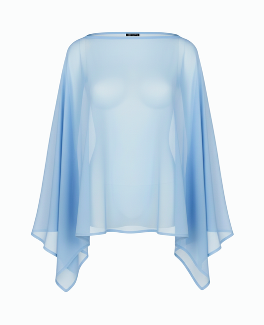 SHEER PONCHO BLOUSE IN SKY BLUE