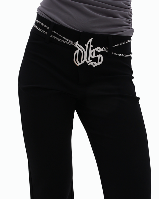 DOUBLE PLATED SKIRT IN BLACK WITH METALLIC BUCKLES