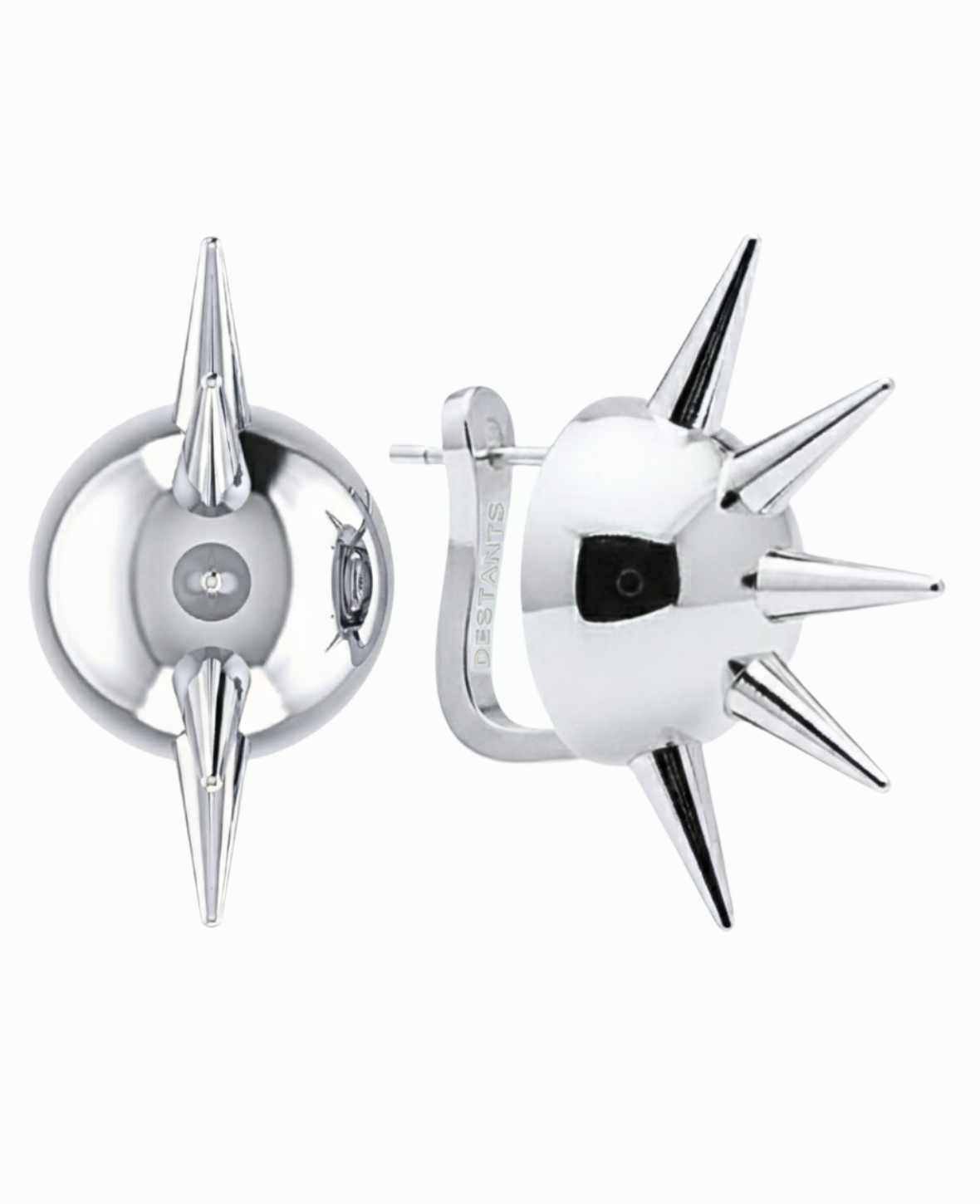 Pendientes de plata de ley inspirados en la estética punk, con esfera pulida y púas afiladas.